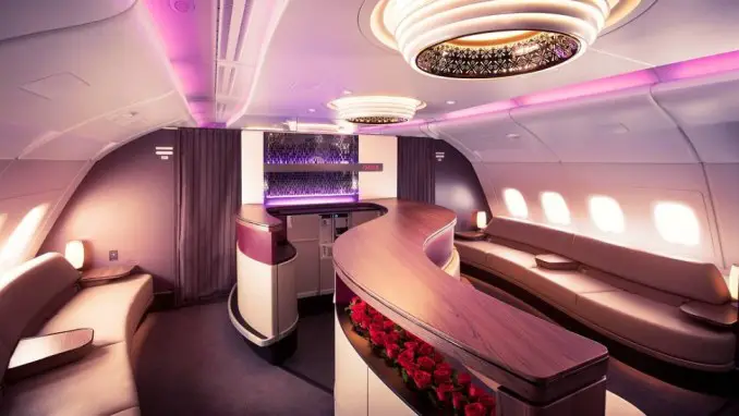 ¿Recuerda los años sesenta y setenta cuando las aerolíneas atraían a los pasajeros con ofertas glamorosas como comedores a bordo y pianos a bordo? Yo tampoco. Pero el A380 trajo de vuelta algo de ese glamour con la introducción de elegantes barras a bordo (aunque Virgin Atlantic fue el primero en instalar barras en todos sus aviones, mucho antes de que se lanzara el A380). Los bares a bordo solo son accesibles para los pocos afortunados que viajan en las cabinas premium del A380 y son buenos lugares para establecer contactos con otros pasajeros, ponerse al día con el correo electrónico o simplemente relajarse. Desafortunadamente, los pasajeros en clase de ganado en la cubierta inferior no pueden ingresar a estos salones a bordo. Solo encuentra un bar en los A380 de Emirates, Korean Air, Etihad Airways y Qatar Airways. Este último presenta mi salón a bordo favorito: un espacio abierto y fluido con un diseño árabe,