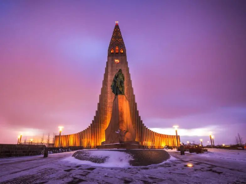 No importa dónde se encuentre en la capital de Islandia, lo más probable es que pueda ver el imponente campanario de esta estructura de hormigón tan inusual. Con 244 pies de altura, la Iglesia de Hallgrimur, o Hallgrimskirkja, como la llaman los lugareños, es el edificio más alto de Reikiavik y la iglesia más grande de toda Islandia. Ubicada en la cima de la colina Skolavorduhaed, esta pintoresca iglesia que se inspiró en el hermoso basalto columnar del agua de Svartifoss en el sur de Islandia ofrece una vista panorámica del centro y del Atlántico al subir en ascensor a la parte superior del campanario. El interior minimalista está en consonancia con la herencia luterana de la iglesia, con la excepción de un elemento audaz: un enorme órgano con unos 5000 tubos que se elevan hasta 50 pies de altura. Frente a la iglesia hay una estatua de Leif Ericsson,