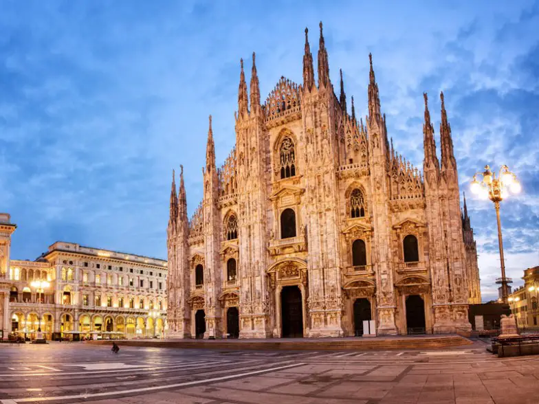 La Catedral de Milán está ubicada en el corazón de la Piazza del Duomo y se erige como el ejemplo más importante de arquitectura gótica en toda Italia. Mark Twain puede haberlo descrito mejor cuando escribió en su clásico de 1869 The Innocents Abroad : "Un mundo muy sólido y, sin embargo, parece a la suave luz de la luna solo una ilusión mágica de escarcha que podría desaparecer con un suspiro". Gran parte de su atractivo reside en el exterior, con las 3.400 estatuas con detalles intrincados y las 135 elegantes agujas que adornan la estructura, pero las ventanas de esta iglesia de mármol son especialmente impresionantes, ya que cuentan historias bíblicas y religiosas. No se debe perder las escaleras para acceder a las terrazas de la azotea, ya que estará rodeado por las torres de mármol y podrá ver todo el camino hasta los picos de los Alpes.