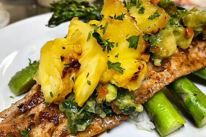 Satisfaga su paladar con sus calamares fritos, halibut y ahi poke con chips de wonton. También te recomendamos su budín de pan, que se cubre con nata montada y caramelo de brandy.