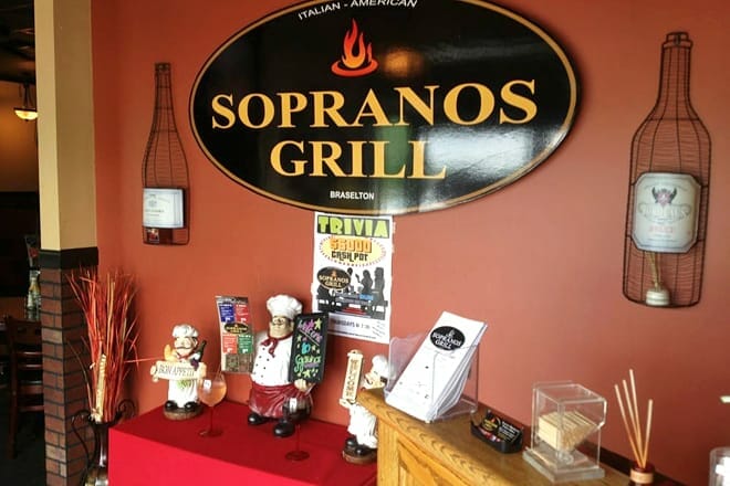 Ubicado a lo largo de Old Winder Highway en Braselton se encuentra Sopranos Grill. Este restaurante informal y familiar se especializa en platos italianos con parrilla estadounidense, cerveza artesanal y cócteles.