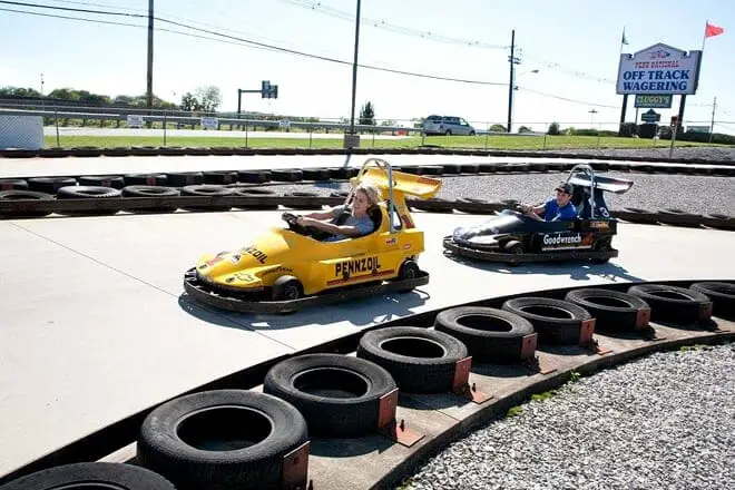 Pase unas horas disfrutando de las atracciones del centro, incluidos los juegos de arcade, las jaulas de bateo y los paseos en karts.