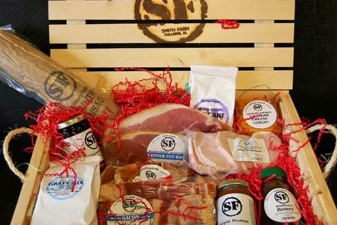 Smith Farms es una tienda de comestibles gourmet local famosa por su carne ahumada, queso y vino.