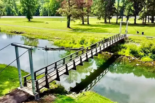Swinging Bridge Park alberga un sendero para caminar de 2,9 kilómetros donde puedes hacer ejercicio con tu familia en Dayton, Tennessee. Es un sendero en bucle con tráfico moderado que se adapta a todos los niveles de habilidad.