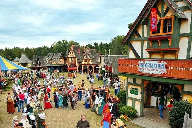 Más de 500 personajes también visten trajes antiguos. Encantadores castillos, atracciones, juegos, música en vivo y mucho más te esperan en una de las ferias renacentistas más grandes de los Estados Unidos.