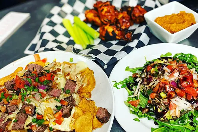 Pide su mejor oferta en el menú que encantará tanto a niños como a adultos. Come algunos nachos, hamburguesas, papas fritas, bistec y alitas de pollo. Los vegetarianos también pueden pedir camarones con espinacas, ensalada de pollo a la parrilla, col rizada césar y ensalada de bistec para mantenerse fieles a sus objetivos de salud.
