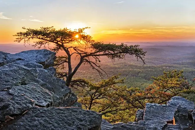 Rodeada por el frondoso Bosque Nacional de Talladega, la montaña Cheaha es el punto más alto del estado de Alabama.