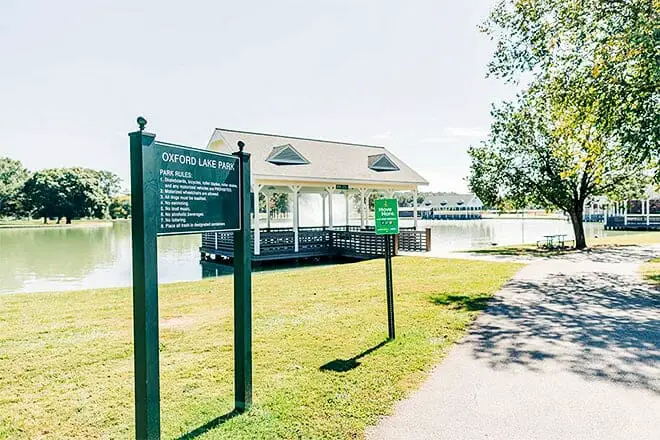 Oxford Lake es un lugar excelente para que disfruten la familia y los amigos, con un sendero para caminar de 0,67 millas que rodea el lago junto con pabellones cubiertos para picnic, un muelle de pesca y el puente cubierto de Coldwater construido en 1850.