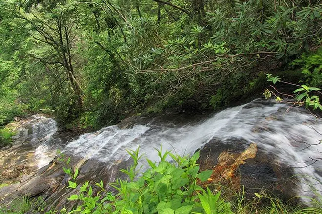 También conocido como "The Cascades", Cascades Falls en EB Jeffress Park se eleva más de 250 pies en las montañas Blue Ridge de Carolina del Norte.
