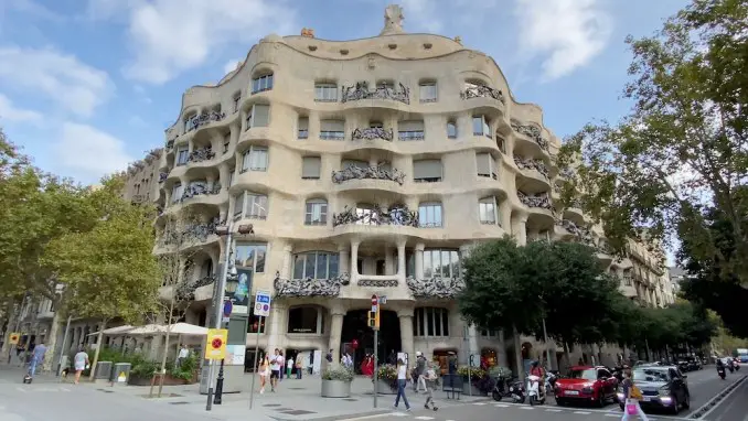 Construida entre 1906 y 1912, la Casa Milà ocupa una esquina entera del Passeig de Gràcia del Eixample barcelonés. Antoni Gaudí creó un sorprendente edificio de estilo modernista, dispuesto en torno a dos patios interiores que dan ventilación y luz a las viviendas. La fachada se asemeja al mar en movimiento, las olas interactuando con los motivos de algas marinas en las barandillas de los balcones de hierro forjado. La Casa Milà fue declarada Patrimonio de la Humanidad por la UNESCO en 1984. Tres espacios están abiertos al público: el ático de ensueño, con sus arcos catenarios de ladrillo; la azotea, donde las chimeneas recuerdan la silueta de guerreros alzándose entre las dunas del desierto; y finalmente un apartamento de época.