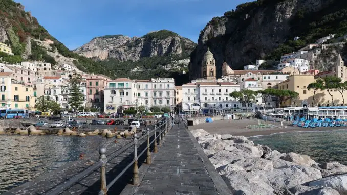 La costa de Amalfi es un área de gran belleza física y diversidad natural, y lleva el nombre de la ciudad de Amalfi, su asentamiento más poblado. Amalfi fue un importante centro comercial desde mediados del siglo IX hasta el XIII. Fue la capital del Ducado de Amalfi. Hoy en día, es un destino popular para los turistas que buscan una belleza deslumbrante en medio del encanto histórico. Amalfi es conocida por su destacada arquitectura medieval, incluida la Catedral de San Andrea del siglo XI, notable también por las cuatro grandes pinturas del techo y la estatua de San Andrés que fue esculpida por Miguel Ángel. El Chiostro del Paradisio, de estilo árabe, es hoy un museo al aire libre, aunque alguna vez fue el cementerio donde se enterró a la nobleza de Amalfi.