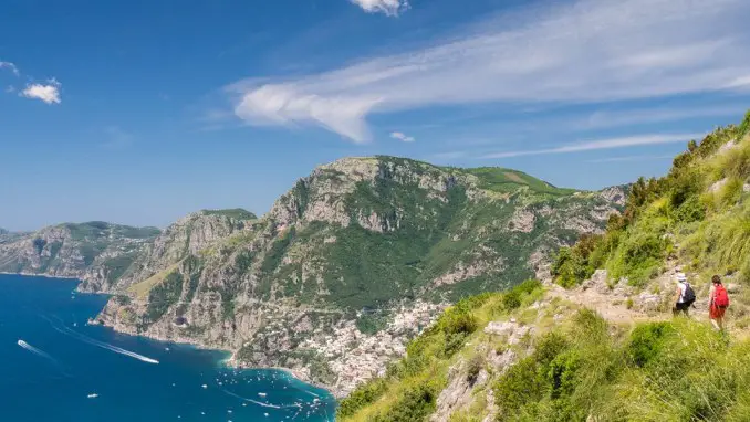 El sendero Sentiero degli Dei, más conocido como el Camino de los Dioses, une la pequeña ciudad de Agerola, en lo alto de una colina, con el pueblo costero de Nocelle. Su nombre ya recuerda a los paisajes mitológicos del Olimpo griego y, seguro, ningún otro nombre podría describir mejor la asombrosa vista que ofrece este sendero de montaña. Desde esta ruta de senderismo, es posible admirar uno de los panoramas más sorprendentes del mundo: un panorama incomparable desde el Cilento (provincia situada al sur de Salerno) hasta la isla de Capri. Idealmente, los caminantes deberían caminar de Agerola a Nocelle, y no al revés; la ruta discurre suavemente cuesta abajo desde esta dirección, con magníficas vistas hacia la costa de Amalfi.
