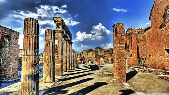 Aunque la Pompeya moderna se siente como un suburbio poco atractivo de Nápoles, alberga el sitio arqueológico más famoso de Europa, las ruinas de Pompeya, que son un claro recordatorio de las fuerzas explosivas que se encuentran en las profundidades del Vesubio. Cuando el Vesubio entró en erupción el 24 de agosto del año 79 d. C., sus cenizas engulleron las dos florecientes ciudades romanas de Pompeya y Herculano, así como las numerosas villas ricas de la zona. Estos han sido progresivamente excavados y puestos a disposición del público desde mediados del siglo XVIII. La gran extensión de la ciudad comercial de Pompeya contrasta con los restos más pequeños pero mejor conservados del centro turístico de Herculano.