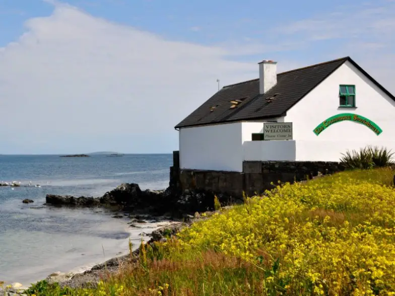 La isla Inishbofin se encuentra a solo seis millas de la costa de Connemara, a la que se accede en ferry desde el pueblo pesquero de Cleggan. La travesía dura solo 30 minutos y es ideal para una excursión de un día con paisajes espectaculares que incluyen playas de arena blanca, farallones marinos, colonias de focas, acantilados escarpados y abundante flora rara. También tiene una historia muy rica, lo que brinda una oportunidad extraordinaria para profundizar en algunos de los patrimonios mejor conservados de la región, desde cementerios antiguos y paisajes de la Edad del Bronce hasta una iglesia en ruinas del siglo XIII en los terrenos de un original del siglo VII. monasterio y el fuerte del siglo XVII de Cromwell.