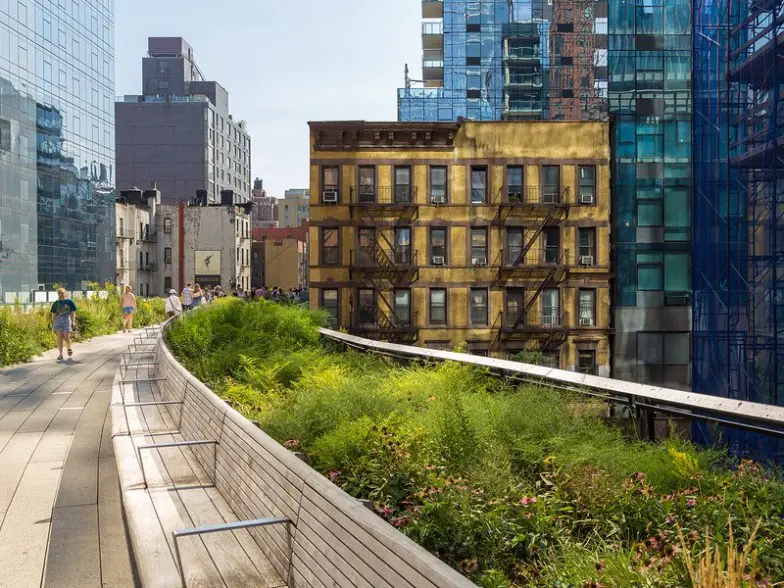 Para tomar un poco de aire fresco y hacer ejercicio, planee visitar High Line, que es un hermoso sendero construido sobre una vía de tren abandonada. Te sentirás como si estuvieras por encima de la ciudad mientras estás rodeado de césped y flores silvestres. High Line se abrió al público en 2009 y tiene 1,45 millas de largo. Durante la primavera, el verano y el otoño, a menudo verá vendedores de comida a lo largo de High Line que ofrecen un brunch o un refrigerio después de su caminata.