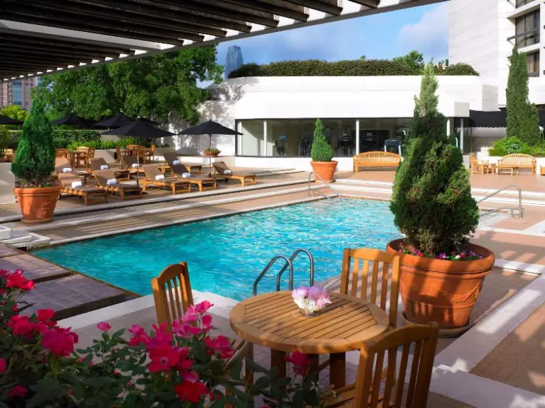 Ubicado al oeste del centro de la ciudad, este "oasis arbolado en el corazón de Houston", como se anuncia el hotel, es uno de los mejores balnearios de Texas . Cuenta con tres piscinas, un tobogán de agua, una piscina para niños y una parrilla junto a la piscina, así como senderos para caminar y canchas de tenis que se encuentran dentro de 18 acres de bosque. El gimnasio ofrece más de 100 clases de fitness todas las semanas e incluso hay un muro de escalada. Hay varios restaurantes disponibles en el lugar, mientras que las habitaciones cuentan con cafeteras Keurig, productos de baño L'Occitane y ventanas del piso al techo. Las suites cuentan con bañeras de hidromasaje y chimeneas.