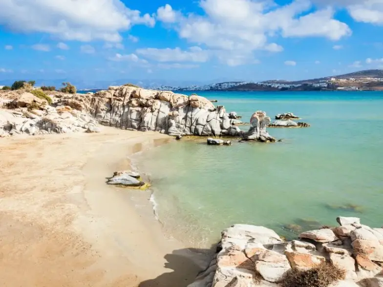 Esta playa de Paros se destaca como una de las más impresionantes de las Cícladas, con rocas suaves como la seda y formaciones únicas esculpidas durante siglos a lo largo de la costa norte de la isla. Hay calas escondidas casi infinitas para relajarse en reclusión o disfrutar de un baño inolvidable, aunque encontrará muchas instalaciones cerca, incluidos lugares para alquilar sombrillas y tumbonas, tabernas griegas y bares de playa de moda. La isla también ofrece ruinas antiguas y monumentos junto con pueblos tradicionales de terrón de azúcar blanco para explorar.