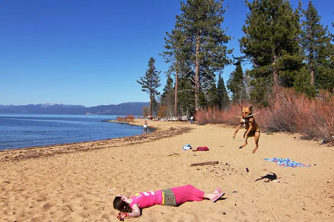 No hay tarifas aquí, y puedes disfrutar de la vista de la esquina suroeste del lago Tahoe con tu perro. Es una gran playa para familias y amigos peludos, sin embargo, asegúrese de traer su propia sombra adicional.