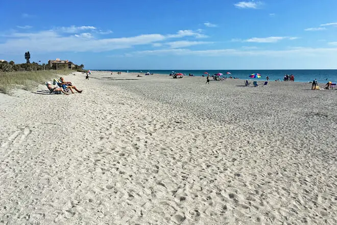 La playa pública más antigua del condado de Sarasota atrae con sus aguas cristalinas y su tramo de arena blanca de 14 millas.