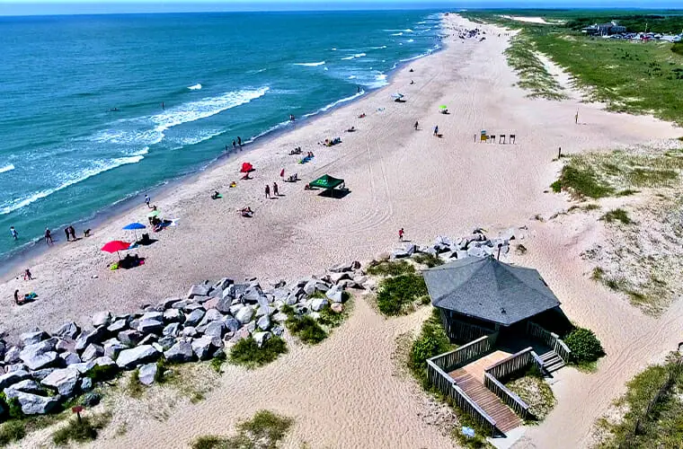 Duck Pubic Beach es reconocida a nivel nacional como una de las "15 mejores playas familiares en Estados Unidos". Cuenta con costas vírgenes que se extienden por millas y vistas infinitas del océano Atlántico.