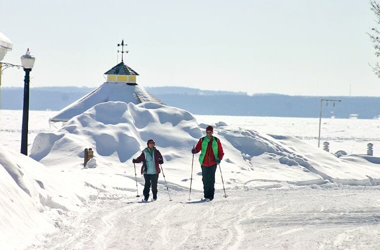 Hay un servicio de ferry limitado a la isla Mackinac en los meses de invierno, pero vale la pena el viaje por la arquitectura victoriana, las calles pintorescas, los festivales de invierno y las vistas heladas del estrecho de Mackinac y el lago Huron.