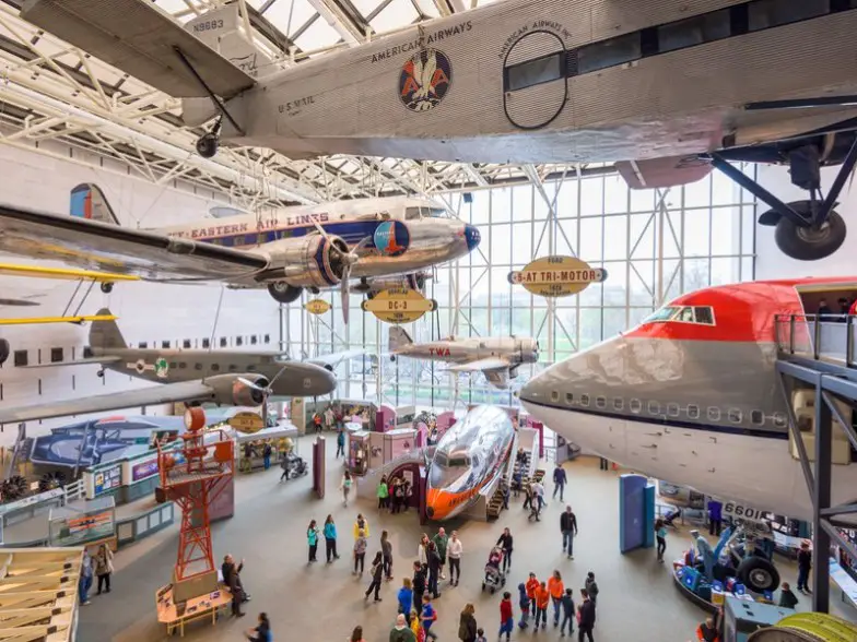 Puede que le sorprenda saber que las exhibiciones generales en el Museo Nacional del Aire y el Espacio en DC también son de visita gratuita. Ven aquí para aprender sobre los famosos primeros aviones volados por Charles Lindbergh y Amelia Earhart, así como un simulador de vuelo, un planetario y más. Si desea visitar el teatro o el planetario, tenga en cuenta que a menudo se cobra por los espectáculos.