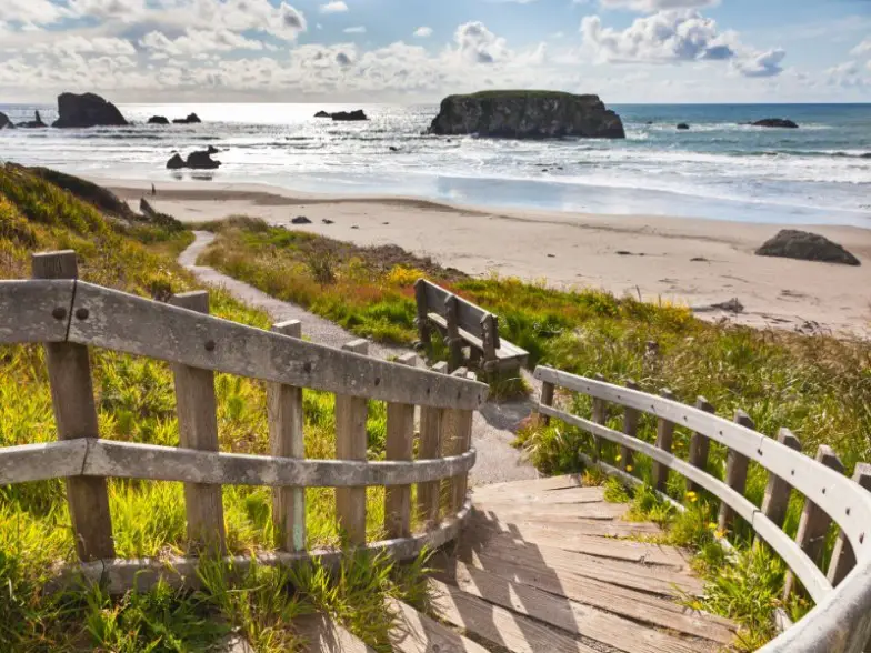 A unos 35 minutos, Gold Beach rezuma muchas de las mismas características que otros lugares costeros. Sin embargo, se inclina al límite cuando se trata de aislamiento y aventuras al aire libre. En un momento podrías estar atravesando frondosos senderos del bosque y luego estar en una playa tranquila y ventosa. Es el mejor de todos los mundos. ¿Y la pesca del salmón? ¡Espectacular! Barnacle Bistro es uno de los mejores restaurantes de Gold Beach, y tendrás que probar las papas fritas con ajo y los pasteles de cangrejo.