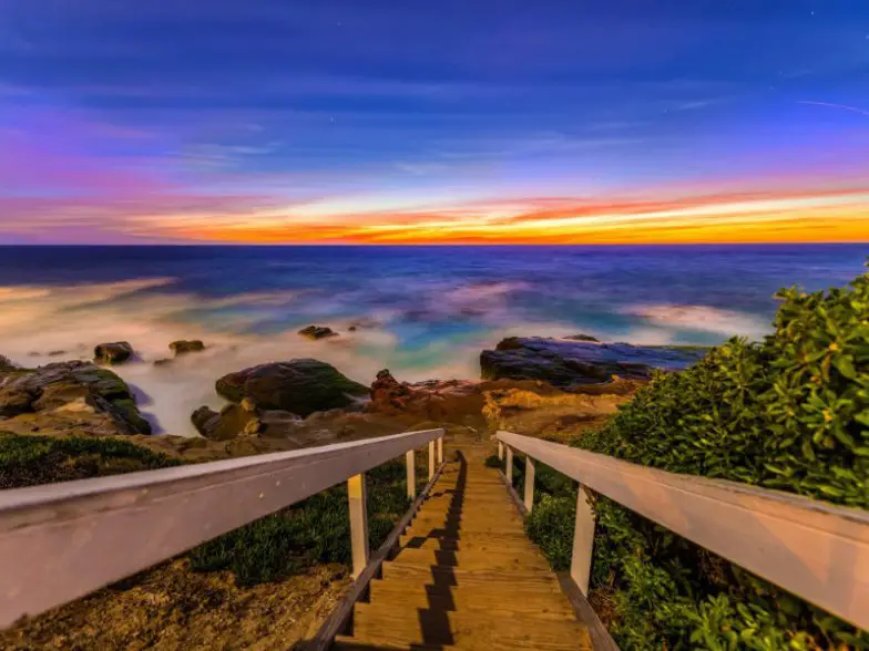 Windansea Beach puede no ser la mejor para nadar, ya que las olas golpean con fuerza contra la arena y los bordes rocosos, pero no deja de ser un lugar impresionante para ver la puesta de sol o tomar algunas fotos. No mucha gente sale de esta manera, dada la naturaleza traicionera del agua, por lo que es una forma de escapar de las multitudes. Aunque, es posible que veas a uno o dos surfistas atrevidos enfrentándose al mar vicioso, o incluso a una ballena durante la temporada de migración.