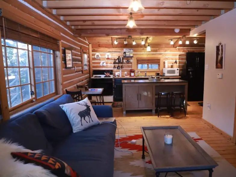 Los techos y paredes de tablones crean una atmósfera rústica, pero podría ser justo lo que estabas deseando. A pesar de la superficie rugosa, varios muebles y accesorios de iluminación contemporáneos llenan la cabina de un poco más de modernidad. Cuando la nieve cae afuera, los árboles circundantes se cubren de polvo blanco y es una escena bastante mágica.