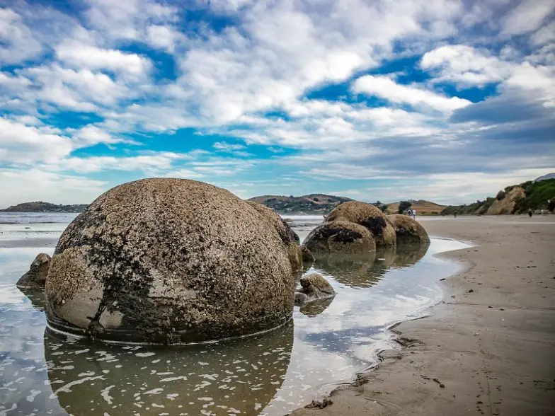 Otra de las hermosas formaciones rocosas naturales de Nueva Zelanda, las rocas Moeraki en Dunedin, tienen alrededor de 60 millones de años y se encuentran a lo largo de la playa de Koekohe. Cargada de leyendas maoríes, su historia es bastante misteriosa, pero ha sido creada mediante un proceso de estratificación. Las rocas esféricas únicas se extienden hasta 6.5 pies de alto y pesan hasta un par de miles de libras. Su enorme tamaño y su ubicación aleatoria lo convierten en un espectáculo digno de ver.