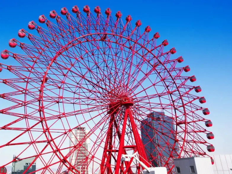 Con una montaña rusa rugiendo a través de su centro abierto, el Big O en un parque temático de Tokio, Japón, desafió la gravedad y los récords cuando entró en funcionamiento a principios de la década de 2000. Casi como una ilusión óptica, la rueda tecnológica parece estar girando en el aire. La ciudad a continuación se puede ver claramente desde las góndolas de vidrio panorámicas, y las pantallas táctiles le permiten seleccionar entre una variación de melodías japonesas.