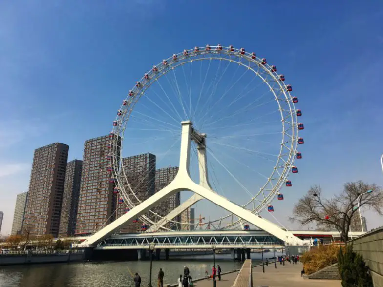 Tianjin Eye está en Hebei, China, y se extiende a ambos lados del río Hai, creando un acento de puente bastante impresionante. Es divertido ver los botes resoplando debajo mientras haces el viaje de 30 minutos, ¡pero puede ser igualmente impresionante ver el timón desde el bote!