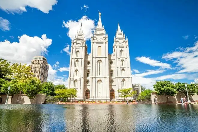 El Templo Mormón, también conocido como Templo de Salt Lake, es un hito icónico. Es el templo SUD más grande en la tierra, abarca 10 acres y mide 222 pies de altura, y se tarda unos 40 años en completarse.