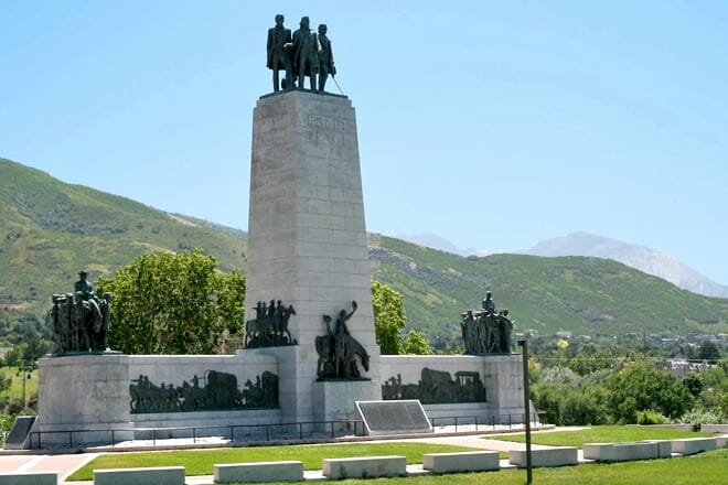 Este es The Place Heritage Park es un hito histórico y un parque de la ciudad. Es donde Bringham Young vio por primera vez dónde sería el nuevo hogar de los pioneros mormones, Salt Lake City. Un monumento colosal se erige para marcar el mismo lugar donde estuvo Young.