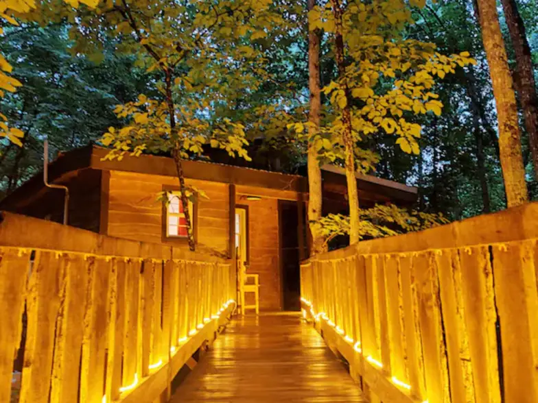 Esta casa del árbol mágica parece parte de un cuento de hadas, escondida entre 18 acres de bosques apartados, con una pasarela iluminada para llegar a ella. Incluye un porche donde relajarse entre la tranquilidad o aprovechar la parrilla para comidas al aire libre. A solo unos pasos hay una bañera de hidromasaje y un área para fogatas con vista a la pintoresca ladera. El interior tiene un concepto abierto con un área de sala de estar, una cocina completa con todo lo que necesita para preparar sus comidas, un armario y una cama tamaño queen. La televisión por cable y Wi-Fi también están incluidos.