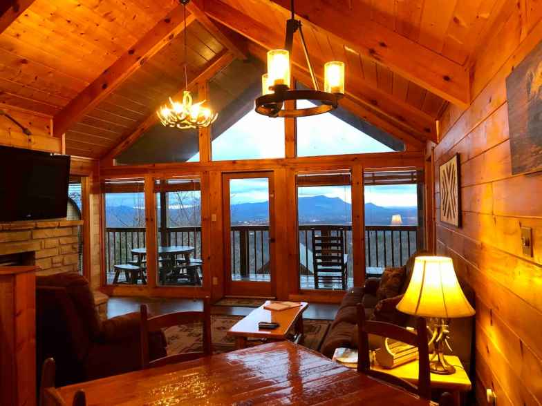 El anfitrión podría referirse a esto como "Pequeño romance", pero un mejor nombre podría ser "Mucho romance". Una cabaña de lujo en la cima de la cima de una montaña, con vista a las Montañas Humeantes junto al Parque Nacional Great Smoky Mountains e incluye dos chimeneas de piedra. Uno está en tu dormitorio principal, que también tiene jacuzzi, y el otro en la sala de estar. Si desea disfrutar de una competencia amistosa, hay un desván con dardos y una mesa de billar, mientras que los espacios al aire libre incluyen una bañera de hidromasaje y un porche con parrilla para comidas al aire libre.