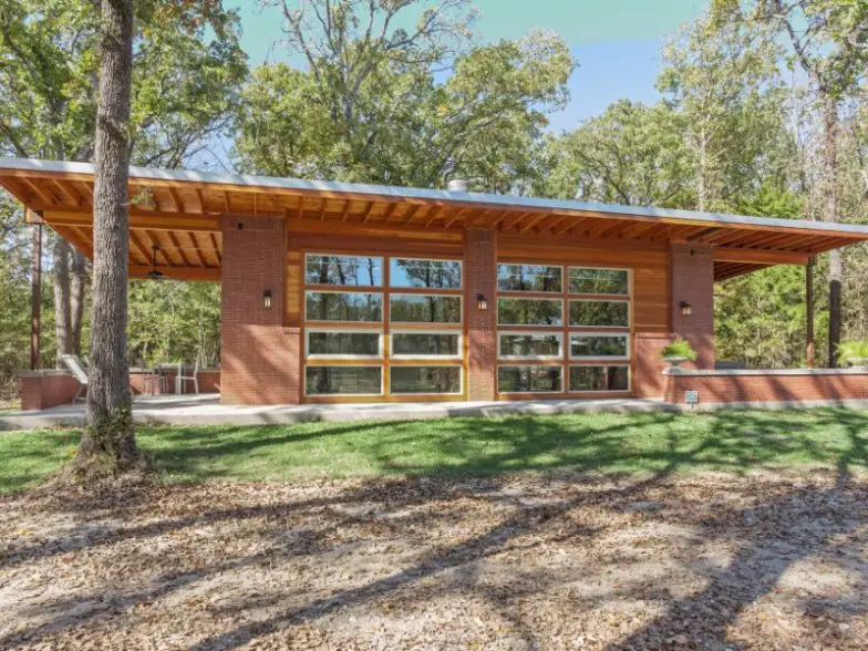 Esta joya arquitectónica ubicada en un área arbolada tiene un concepto de piso abierto y una chimenea transparente, inspirada en Frank Lloyd Wright, con hermosos trabajos en vidrio, diseño art deco, vitrales y líneas rectas. Es una escapada rápida y fácil de Dallas y podrá relajarse en el área del patio y disfrutar del jacuzzi. Si bien no hay una cocina completa, tendrá una mini-nevera, un microondas y una parrilla para barbacoa para comidas al aire libre.