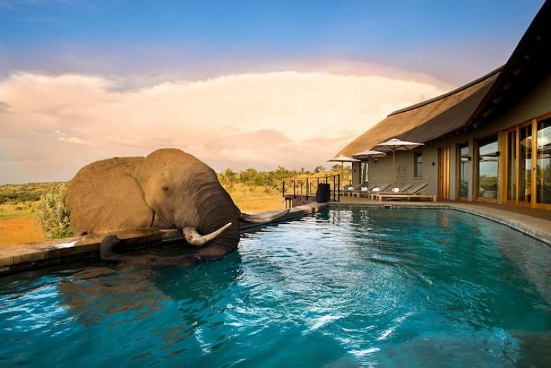 Recibir la visita de un elefante mientras disfruta de la piscina en su villa privada es una experiencia única en la vida que se puede disfrutar en la reserva de caza de Welgevonden. Su nuevo amigo podría incluso unirse a usted en un desayuno en el patio. Luego, disfrutará de un viaje guiado privado para observar la vida silvestre que incluye también a otros miembros de los "5 grandes": leones, rinocerontes, leopardos y búfalos del Cabo. Tendrás una chimenea al aire libre, cocina totalmente equipada, Wi-Fi, TV, un gimnasio en casa y mucho más.