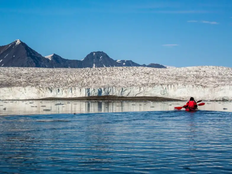 Kayak a un glaciar