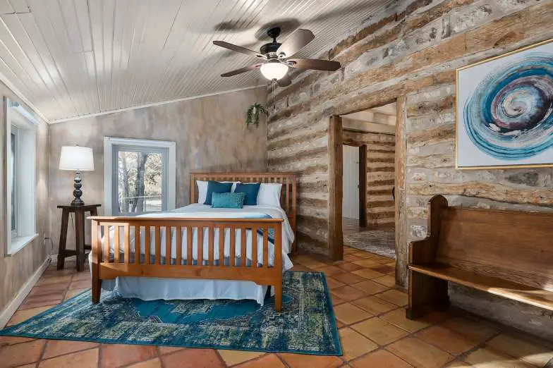 Esta encantadora cabaña de troncos histórica fue construida en el siglo XIX y se encuentra en 7,5 acres pintorescos ubicados en Hill Country, rodeado de robles y un gran granero rojo. Tendrá mucha privacidad mientras está cerca de la ciudad para aprovecharlo todo. Después de explorar, regrese y relájese con una copa de vino en uno de los dos porches o en la gran sala de estar al aire libre que tiene una chimenea a leña. Hay una bañera de hidromasaje al aire libre aislada para la privacidad, pero si prefiere sumergirse en el interior, el hermoso baño de piedra expuesta en la planta baja cuenta con una gran bañera con patas. También tendrá un televisor con Roku y capacidades de transmisión, un reproductor de DVD, Wi-Fi y una cocina completa.