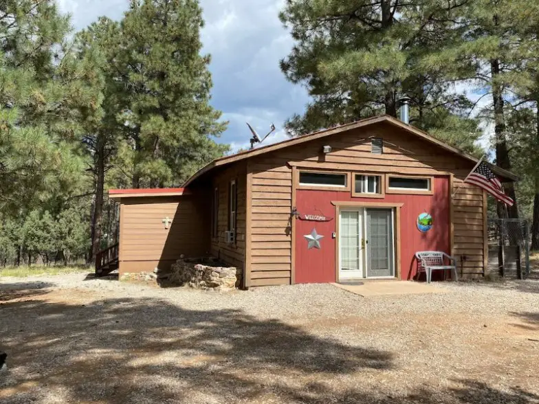 Para estar cerca del Bosque Nacional de Gila, también puede quedarse en esta cabaña que se encuentra en 29 acres de tierra aislada con mucha vida salvaje alrededor. Tiene una cama de tamaño completo y un sofá cama para acomodar a tres personas en el espacio de un dormitorio que también tiene un baño. Esta es una cabaña económica con senderos para caminatas en la propiedad y acceso a la sauna del barracón con la aprobación del anfitrión. La cabaña no tiene cocina adentro, pero sí tiene una pequeña nevera, microondas y cafetera. No es adecuado para niños o mascotas.
