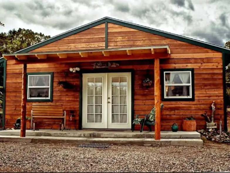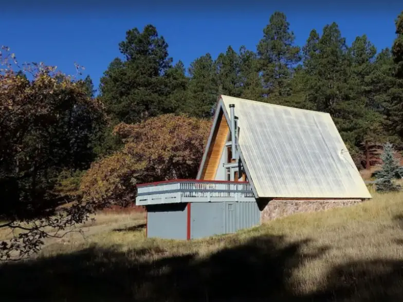 Una cabaña rústica de Airbnb para su aventura en el norte de Nuevo México es esta para hasta cuatro personas. Es una unidad de estudio con espacio pequeño en la cocina, chimenea kiva, 3/4 de baño, cama grande y sofá cama plegable. La cabaña tiene calefacción a gas y eléctrica y está abierta todo el año para sus viajes de pesca, caza y esquí. Otras cosas divertidas para hacer durante su estadía en esta área incluyen paseos en jeep, visitas a bodegas y pueblos, golf, caminatas, paseos en globo aerostático y rafting en aguas bravas. Hay una pequeña tienda en el lugar para regalos y pequeños artículos de tocador.