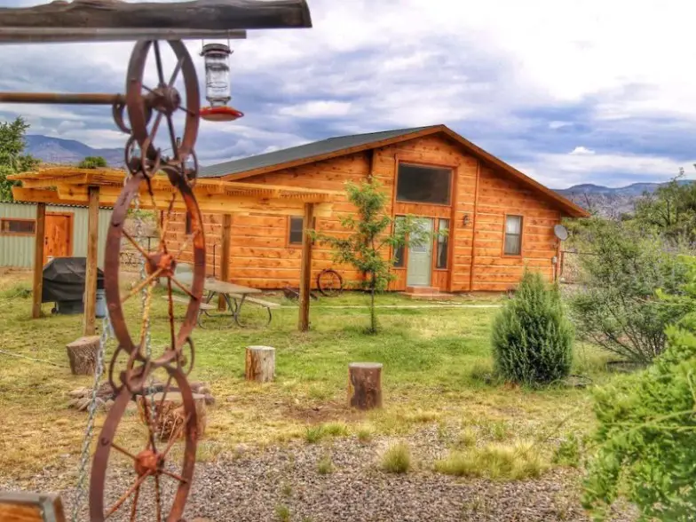 Aquí hay una cabaña asequible para hasta cuatro personas cerca del río Gila. Es una cabaña de troncos hecha a mano en Bearpaw Ranch que tiene un altillo para dormir, un patio cercado y cuatro estanques a una corta distancia a pie. Quédese aquí para estar cerca de la pesca, el senderismo y la caza. Incluso puedes traer tus caballos aquí porque hay un gran granero y un campo cercado. Está a 30 millas de Silver City y es un excelente lugar para observar aves. La observación de estrellas aquí está fuera de este mundo debido a los oscuros cielos nocturnos.