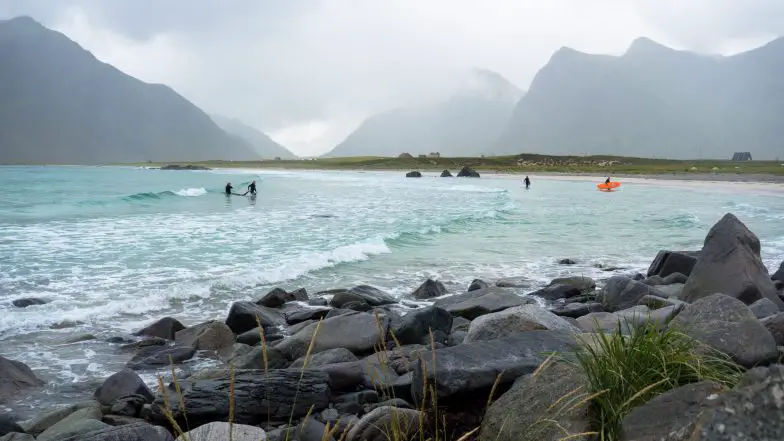 Únete o mira a los surfistas del Ártico en la playa de Unstad
