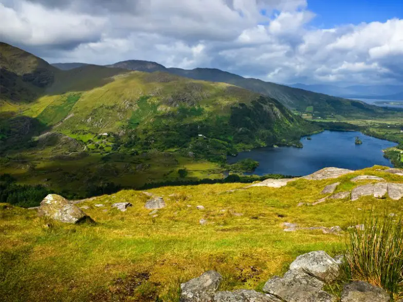 Un estrecho paso de montaña tallado entre MacGillycuddy Reeks y Purple Mountain por el flujo glacial, Gap of Dunloe es uno de los lugares más pintorescos de toda Irlanda para caminar o conducir. El camino serpentea a través del paso, descendiendo al Black Valley pasando por cinco lagos, incluidos Black Lake, Coosaun Lough, Auger Lake, Black Lough y Cushnavally Lake. A pocos pasos de la cabaña de Kate Kearney se encuentra el "Puente de los deseos", un hermoso puente donde la leyenda cuenta que los deseos realmente se hacen realidad. Para una experiencia especialmente inolvidable, súbase a un carro tirado por caballos para viajar a través de Gap hasta la cabaña de Lord Brandon para tomar un bote de regreso a Killarney.
