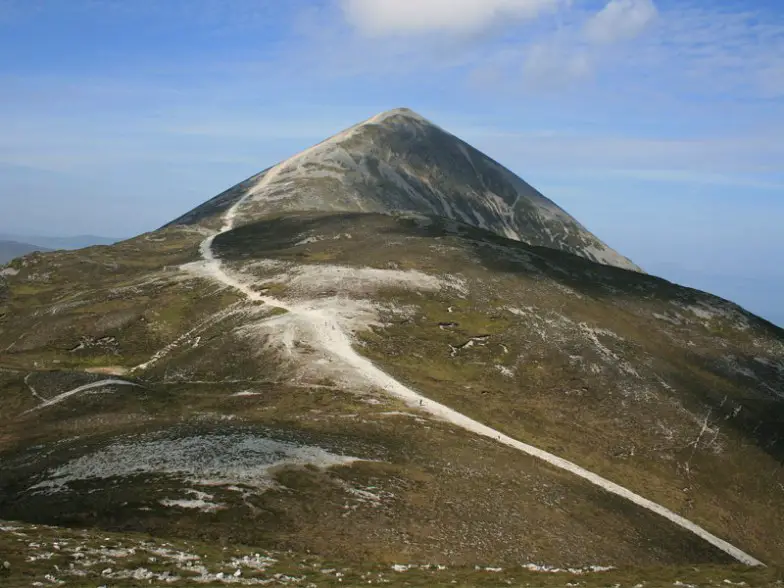 La forma cónica de Croagh Patrick se eleva más de 2500 pies sobre la bahía de Clew y el paisaje del condado de Mayo y se considera un importante lugar de peregrinaje. Considerada la montaña más sagrada de toda Irlanda, recibió su nombre del santo patrón del país, San Patricio, de quien se dice que ayunó y oró durante 40 días en su cima durante el siglo V. Todos los años, el domingo de Reek, el último domingo de julio, miles lo suben, muchos descalzos, para llegar a la capilla en la parte superior donde se celebra la misa y se escuchan las confesiones.