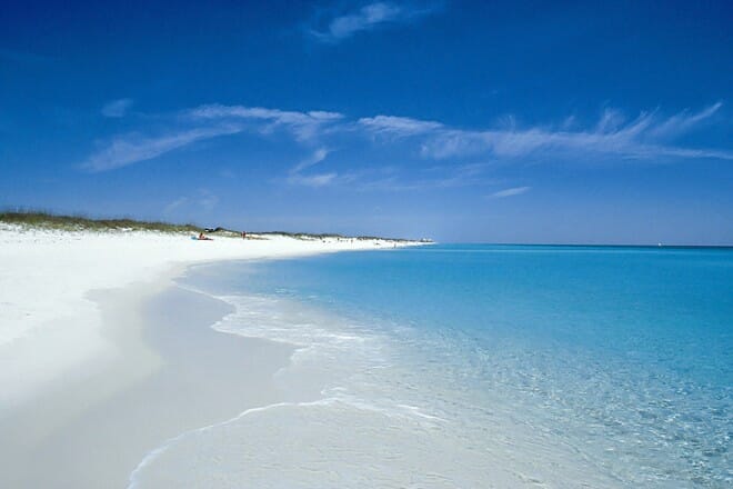 Disfrute de una costa majestuosa y extensa que se complementa con dunas de arena blanca como la nieve de 30 pies donde puede tomar el sol de Florida, explorar la variedad de puntos de agua alrededor de la playa y divulgar todo tipo de actividades recreativas acuáticas para un inolvidable experiencia.