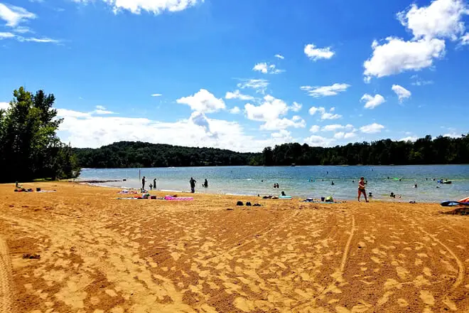 Una de las mejores playas cerca de Cincinnati, OH, se puede encontrar dentro de Natural Springs Resort. Tiene vista a un lago alimentado por un manantial con aguas súper claras con olas suaves.
