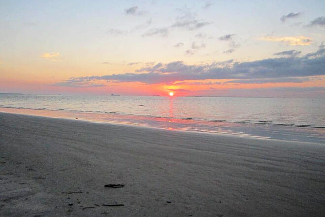 Sylvan es, sin duda, una de nuestras escapadas rápidas favoritas a la playa desde Houston. No solo está a un corto trayecto en coche de la ciudad, sino que esta playa de arena blanca también tiene un montón de servicios. Hay un parque de patinaje, un parque infantil, un pabellón con aire acondicionado, canchas de tenis y mesas de picnic.