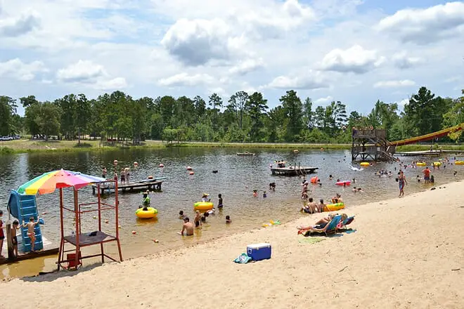 ¿Busca playas lacustres cercanas? Hágase un favor e incluya este lago en su lista de bonitas playas imperdibles cerca de Houston. Con su playa de arena, definitivamente te divertirás mucho tomando el sol, chapoteando en sus aguas y remando en bote en este lago.